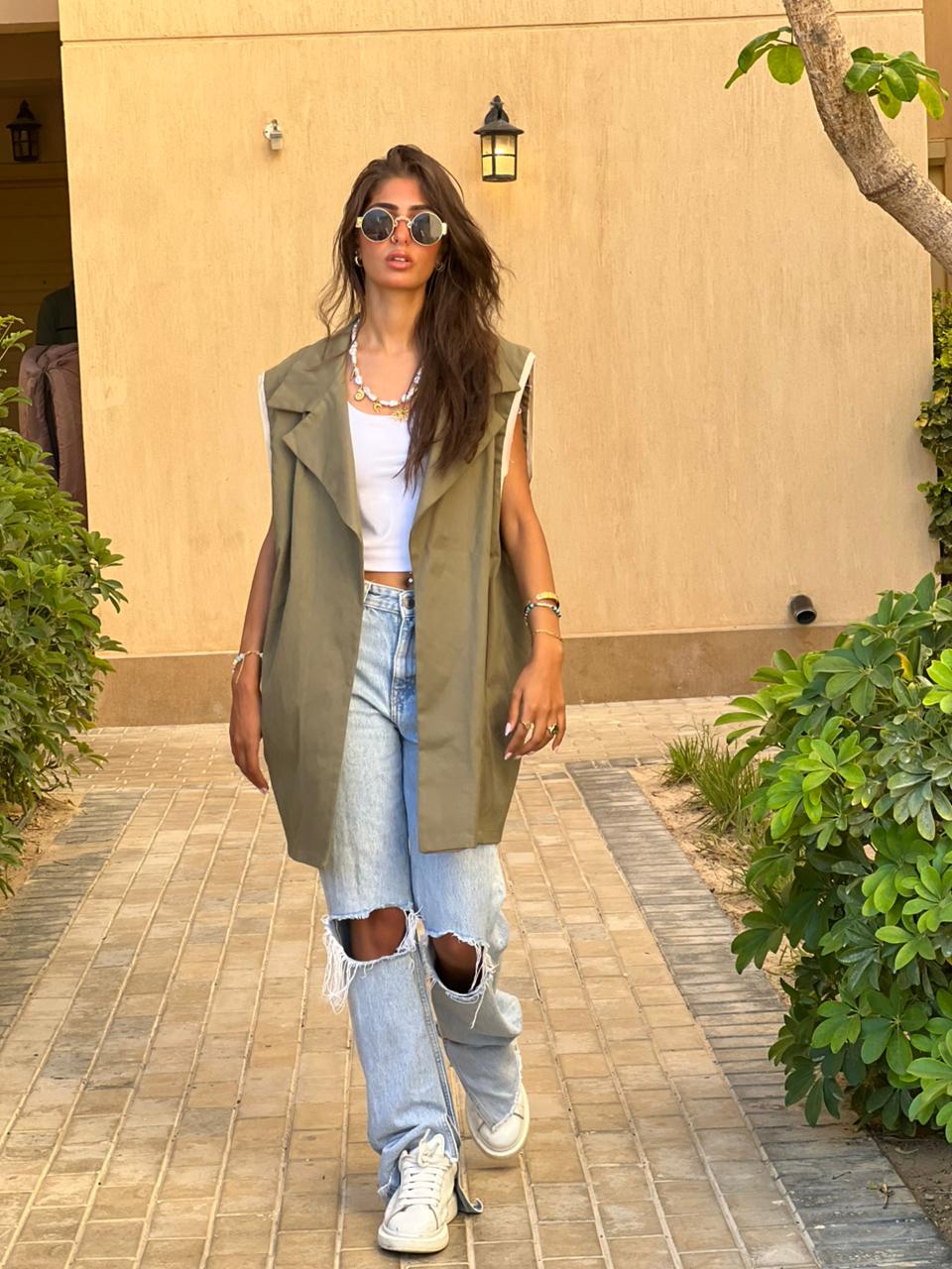 Gabardine Vest With Studded Belt